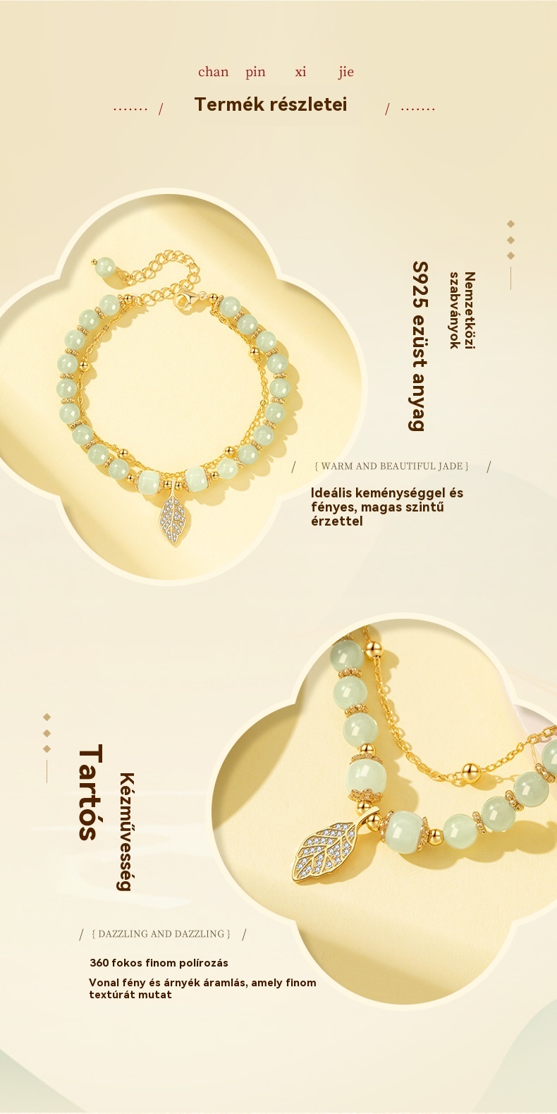 ✨ Vadonatúj 14K arany Hetian jade karkötő